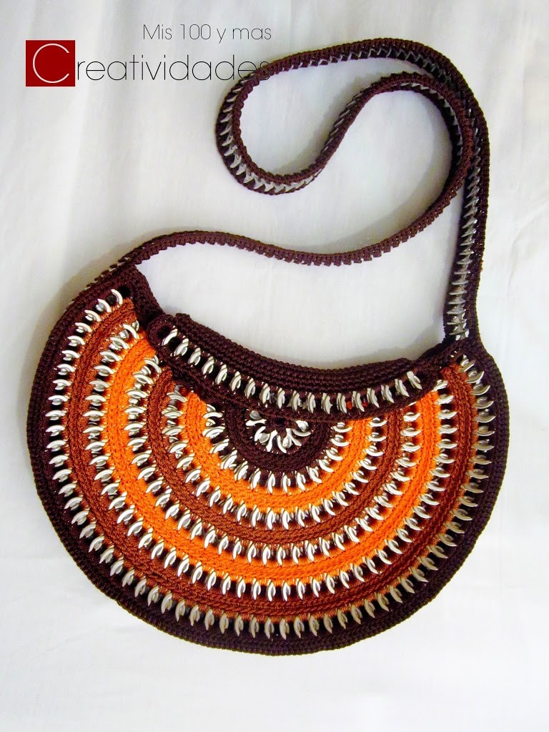 Animate a hacer este lindo bolso redondo. Todo hecho con anillas de refresco de lata. Aqui te explico paso a paso la elaboración. Puedes mezclar los colores que tu quieras, o utilizar solo uno. Vas a necesitar aproximadamente 470 anillas, hilo nylon #9. I crated this tutorial for a circle shaped purse made with aluminum […]