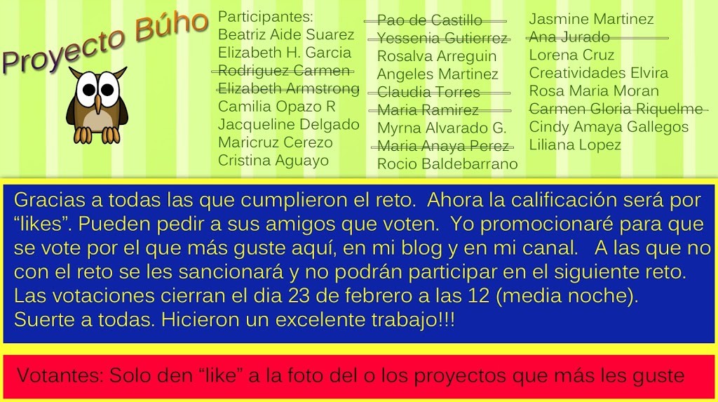 Hola amigos! se acuerdan que les platique de un concurso que consistia en hacer una bolsa o mochila en forma de Búho? bueno, aqui tienen los resultados de 16 participantes. Me siento muy orgullosa de ellas, ya que son diseños de ellas mismas, claro, con material de reciclaje entre los cuales están: anillas, fondos de […]