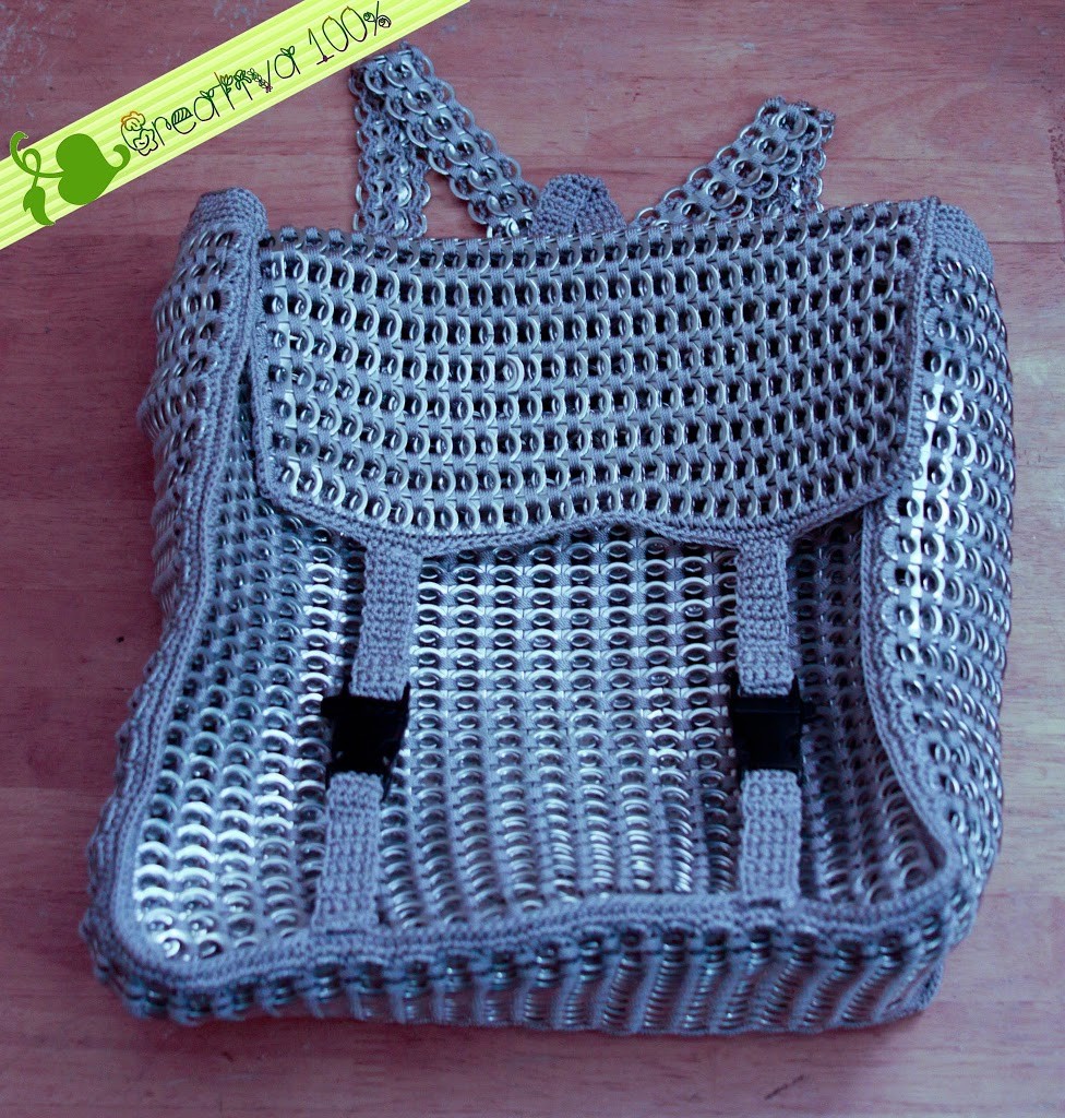 Para las que tienen muchas anillas y deseen engancharse con un mega proyecto, este es el indicado. Esta mochila esta hecha con 2,460 anillas, ideal para un adolescente. Aqui las fotos y el paso a paso. Paso a Paso: Parte 1: Parte 2: Suscribete a mi canal:http://www.youtube.com/subscription_center?add_user=creatividades100
