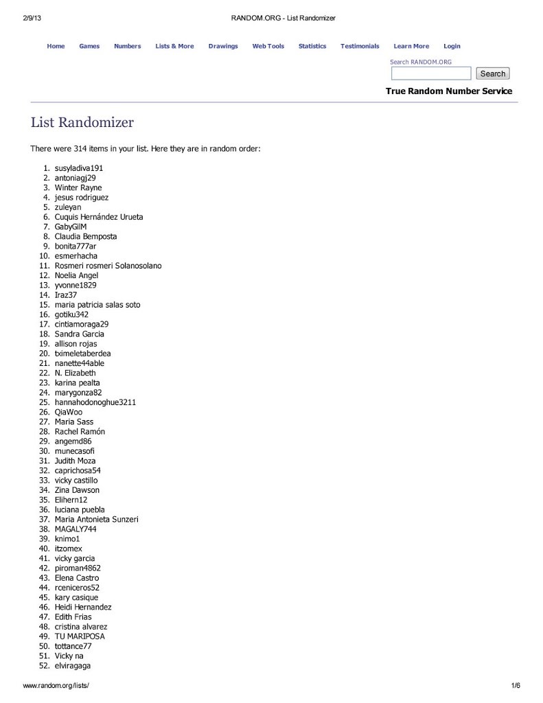 Gracias a todos por participar! Felicidades ZINA DAWSON! Actualización 2/15/13: Como ya ha ocurrido en ocasiones anteriores, la ganadora Zina Dawson no se comunicó conmigo, por lo tanto, después de 4 días anuncio a otro nuevo ganador utilizando el mismo sistema de Random.org pero manteniendo la misma numeración. La suertuda ganadora esta vez es la […]