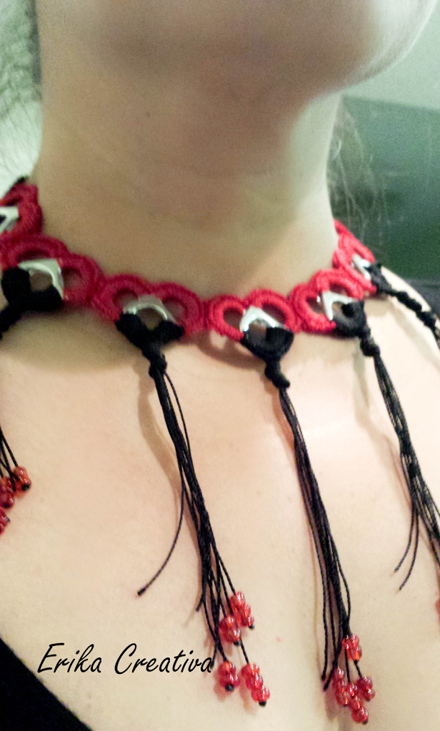 Este collar me gustó mucho. Está hecho con anillas en forma de corazones pero utilicé dos colores de hilo Omega #2. Lo adorné también con flecos y cuentas en las puntas. Tutorial incluido. I liked this necklace very much. It’s made with aluminum pull tabs formed into several hearts. I used Omega nylon thread #2 […]